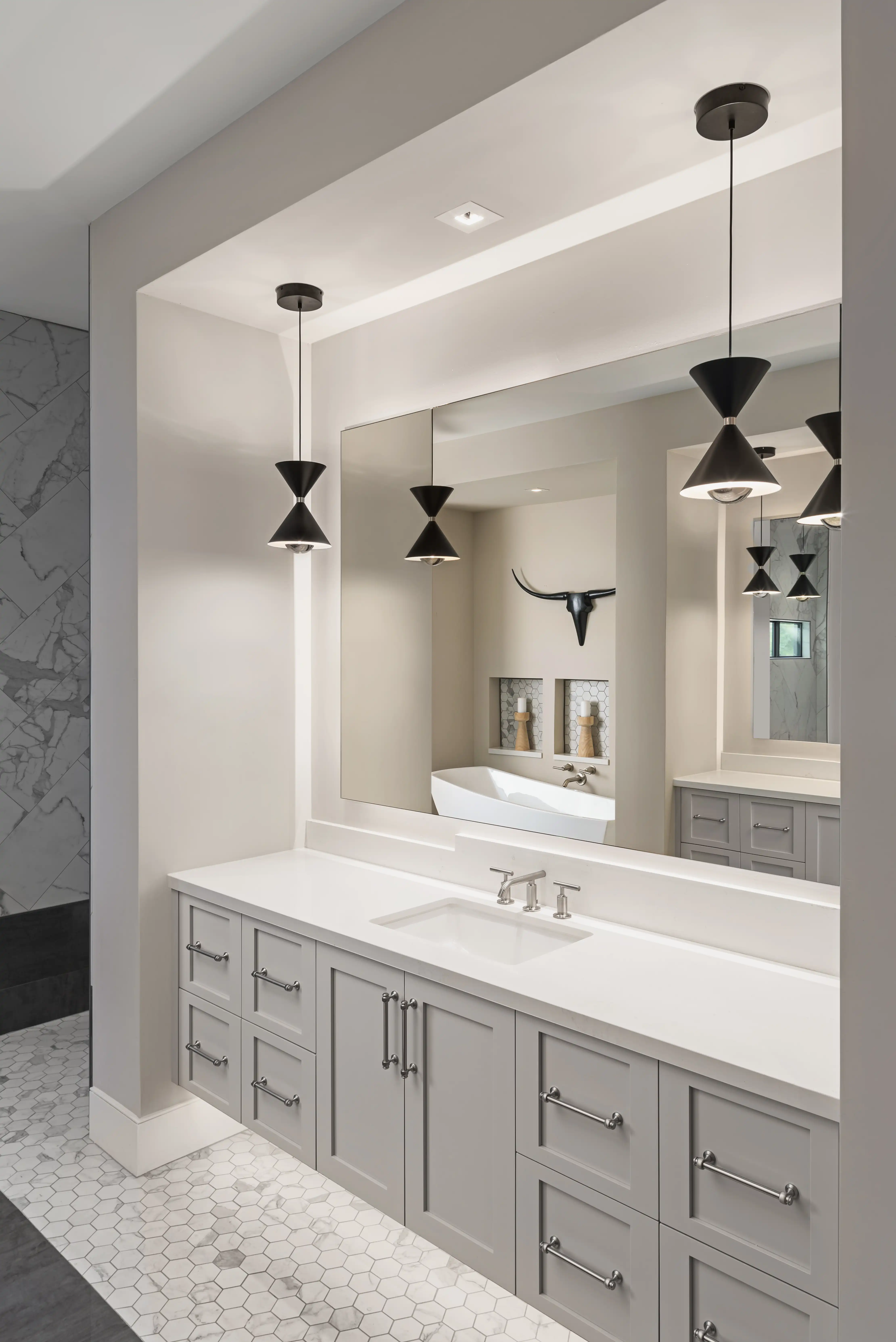 The modern rustic desert-inspired interior blends sleek, contemporary design with the rugged beauty of the desert landscape. Warm, earthy tones like soft browns, and sandy neutrals dominate the space, complemented by natural materials such as raw wood, stone, and leather. Minimalist furniture with clean lines is paired with handcrafted accents, creating a balance between modern sophistication and rustic charm. Large windows invite desert vistas indoors, while subtle textures, like woven rugs and textured walls, add warmth and depth to the serene, nature-infused environment.